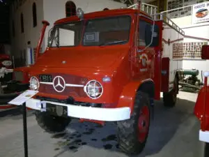 Unimog’en er fra 1962 og er bygget af Meisner-Jensen som slangetender til Hundested Brandvæsen. Der er kun bygget to køretøjer af denne type, hvilket gør den til et særligt og sjældent indslag i samlingen.